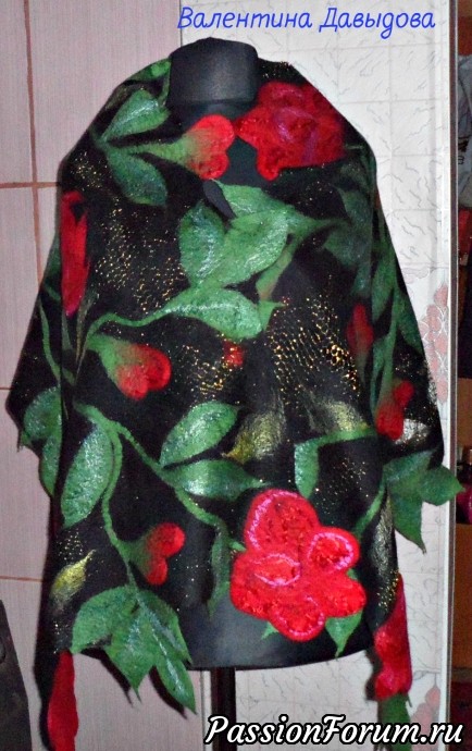 Палантин изготовлен из тонкой мериносовой шерсти с использованием волокон вискозы на основе ткани-сетка.Палантин яркий,тёплый и очень красивый.Прекрасно будет сочетаться с любым вечерним нарядом.Украсит любое пальто,шубу или куртку. В прохладный летний вечер можно накинуть на плечи.Любая женщина в этом палантине уж точно не останется незамеченной.Палантин изготовлен по заказу.Уедет в США.