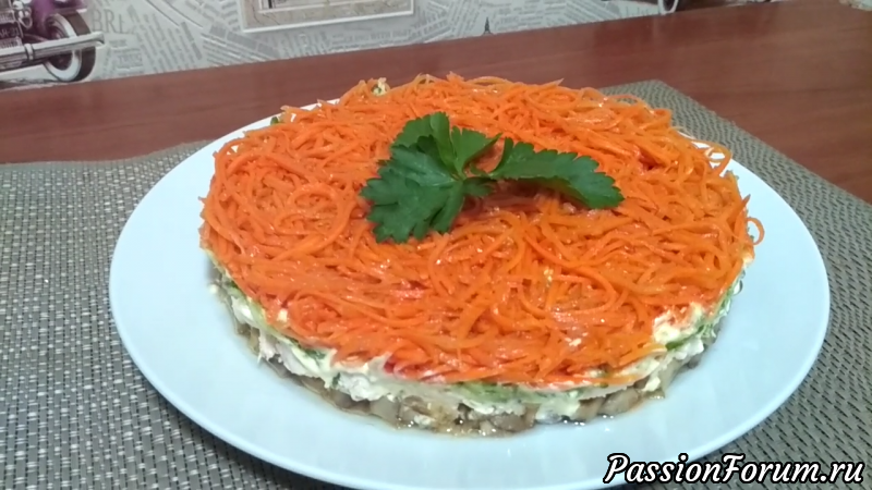 Предлагаю приготовить салат "Восторг"-вкусный ,сытный и праздничный!!!!Отличается превосходным вкусом и манящим ароматом....Готовиться очень легко и просто!!! Ингредиенты: 1.Грибы шампиньоны - 350г 2.Огурец свежий - 2шт 3.Лук - 2шт 4.Отварная куриная грудка - 300г 5.Морковь по корейски - 200г 6.Майонез 7.Растительное масло для жарки Способ приготовления: 1.Нарезаем кубиками лук и грибы.Жарим на растительном масле лук до золотистого цвета и добавляем грибы,перемешиваем и жарим да тех пор пок...