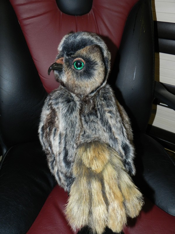 Выполнена из искусственного меха, когти и клюв вылеплены вручную из запекаемой полимерной глины, крылья, лапы, голова подвижные.