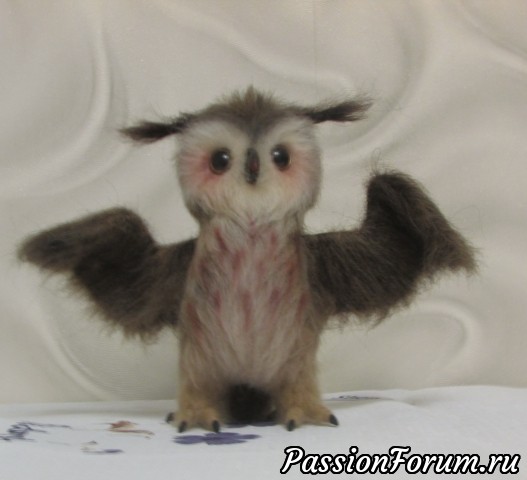 Разрешите представить, Совушкин. Работа выполнена в технике сухое валяние, из 100% шерсти. Крылья на проволочном каркасе, что позволяет менять их положение.