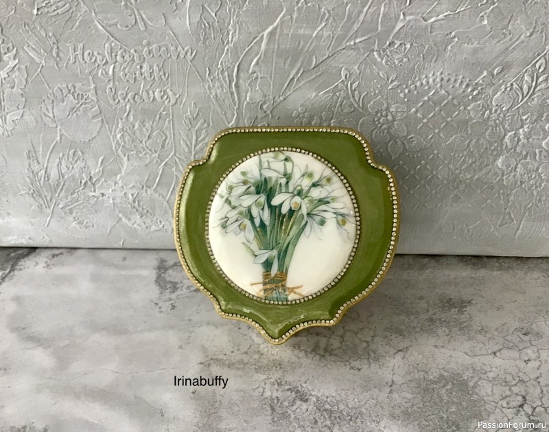 Декор шкатулочек: бархатные и имитация фарфора.