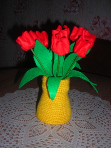 Здравствуйте, дорогие рукодельницы! Вот и я решила первый раз попробовать себя при создании МК. Моим верным помощником всегда и везде, а сегодня тем более, будет моя маленькая дочурка Дарьюшка, которой 4,5 годика. Но что бы я не начинала делать она тут как тут и кричит: "Я тоже!!!!" Вот и решили мы сотворить с ней совместное чудо - букетик тюльпанов.