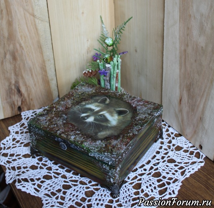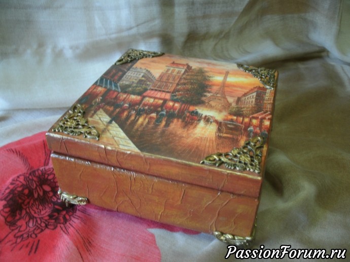 Всем доброго времени суток!!! Хорошего настроения!!! Последнее время мой творческий пыл поугас,но...потихоньку творю. Эта шкатулка была уже оформлена лет 8-9 назад,но уж ооочень неудачно.И лежала она в работах для переделки.И пришло ее время.Сын мне ее полнстью обновил.Удалил ВСЕ мои краски-украшалки.Зашкурил и..Появилась у меня почти новая шкатулка.Но и она получилась не очень удачная.И я не учла один момент,но чтобы исправить ЭТО,нужно ВСЕ опять убирать и переделывать. Решила оставить так..как ...