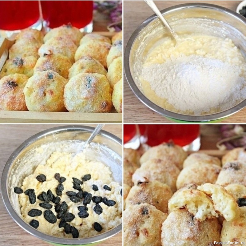 3. Противень застилаем пекарской бумагой. Творожное тесто выкладываем ложкой небольшими горками в шахматном порядке. Отправляем в духовку на 15–20 минут. Готовим при температуре 180–190°С