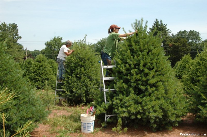 Весной прищипывают молодые «свечки» (новые побеги) примерно на треть — дерево будет гуще.