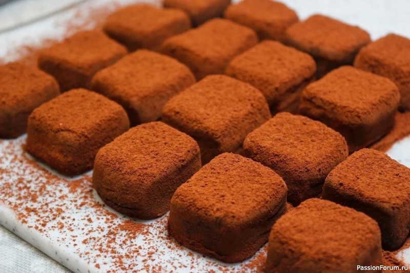 Сверху конфеты посыпаю какао порошком и можно угощаться!