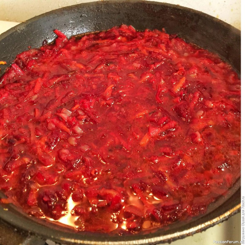 Сегодня в наш борщ я не добавляла фасоль. Ее можно добавить в бульон вместе с мясом, предварительно замочив на 10 часов в холодной воде.2.Тем временем, пока наша заготовка (для супа или борща) в виде бульона варится, мы делаем зажарку. Берем лук, морковь, свеклу, томатную пасту, немного лимонного сока, щепотку сахара, соль, перец.