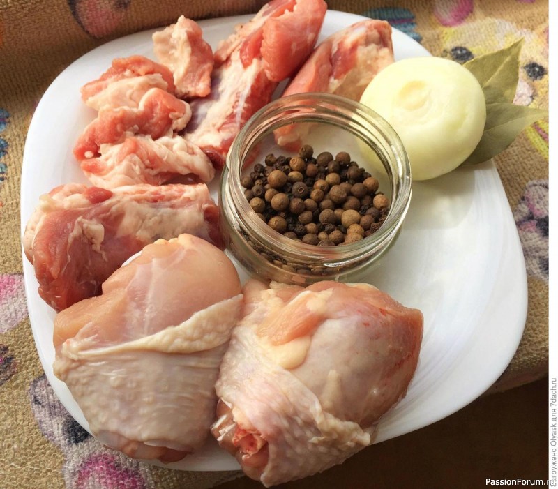 1.Ни для кого не секрет, что 50% успеха в приготовлении этого блюда – это наваристый бульон. Для бульона сегодня мы возьмем свиные ребра и куриные ножки.