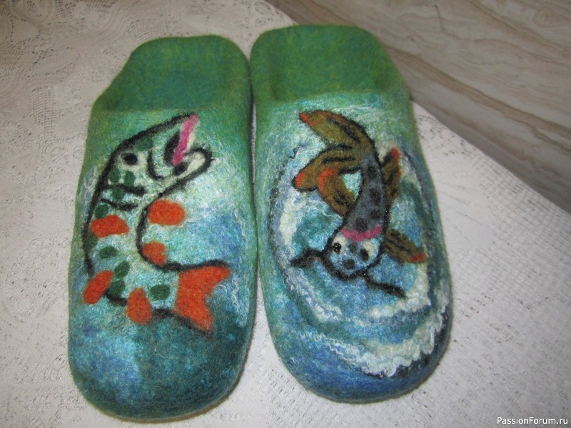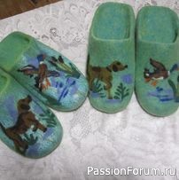 Продам тапки ручной работы, свалянные из чистой шерсти , подошва из микропоры, рисунок набит иглой и хорошо вваляный, Цена 2143 р.