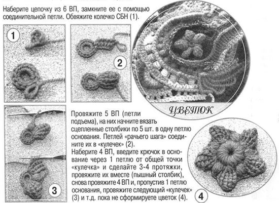 Вязание цветка в технике фриформ: