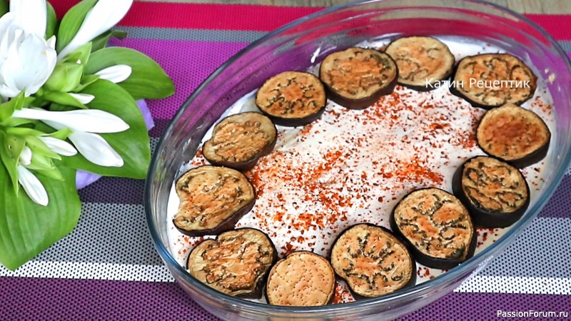 5. Сверху плотно уложить запеченные баклажаны, покрыть тушеным фаршем.