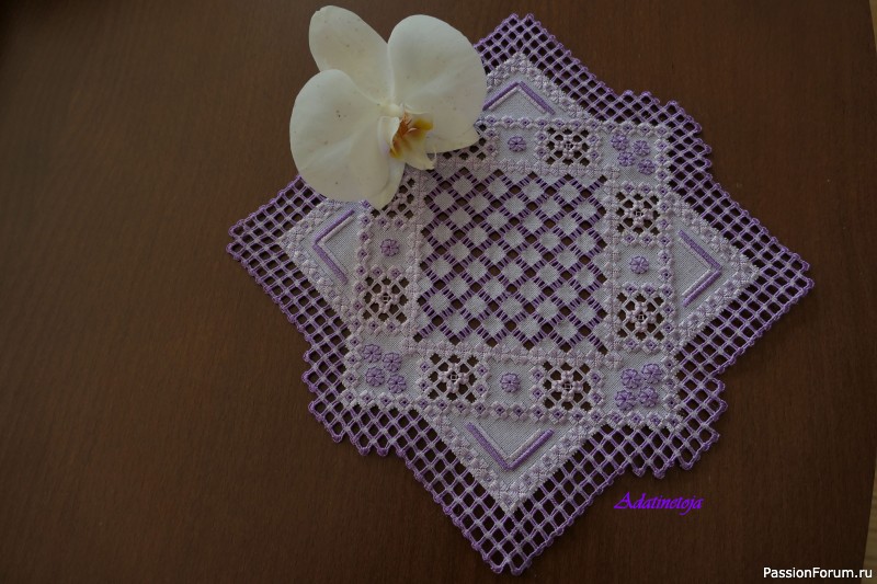 Онуте, салфетка напоминает слова из песни — «Плыл по городу запах сирени...», а в вашем случае — по квартире плыл запах сирени, до чего же салфетка красива!