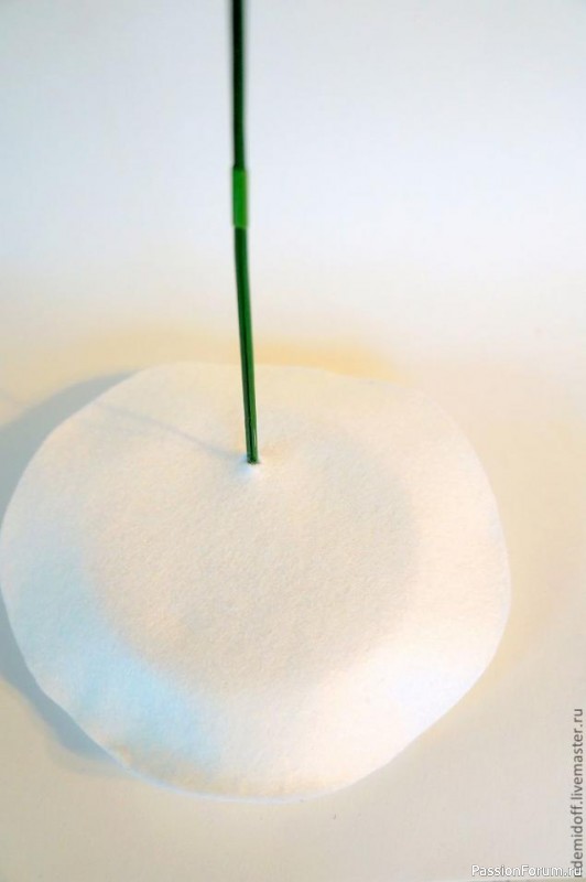 Делаем надрез и одеваем фетр на проволоку, еще раз проверяем, что бы все бока фетр закрывал.
