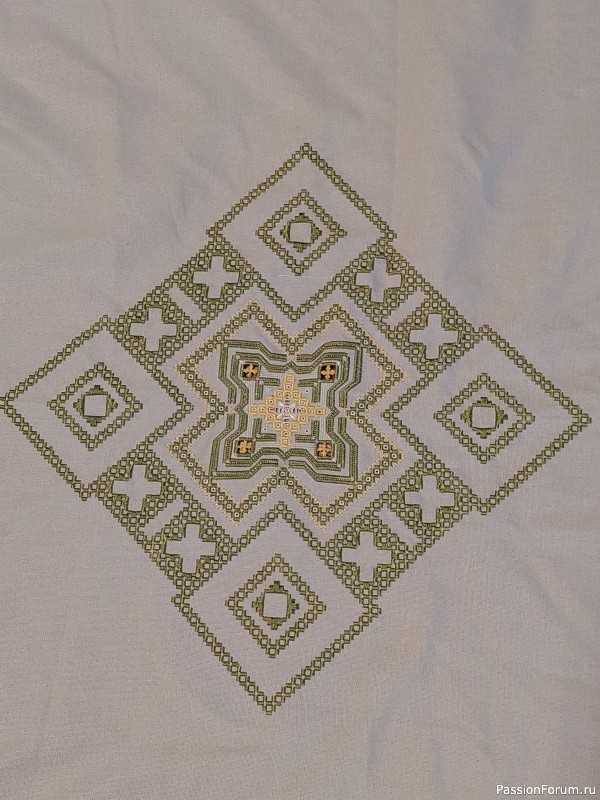 Хотела спросить. А пространство вокруг центрального ажура между «крестиками» с пико через 2 нитки вверх и в каждой второй в сторону каким швом зашито? Бискорнюшным? У Тебя это светлыми нитками вышито. И Олеся как раз о нем же спросила.