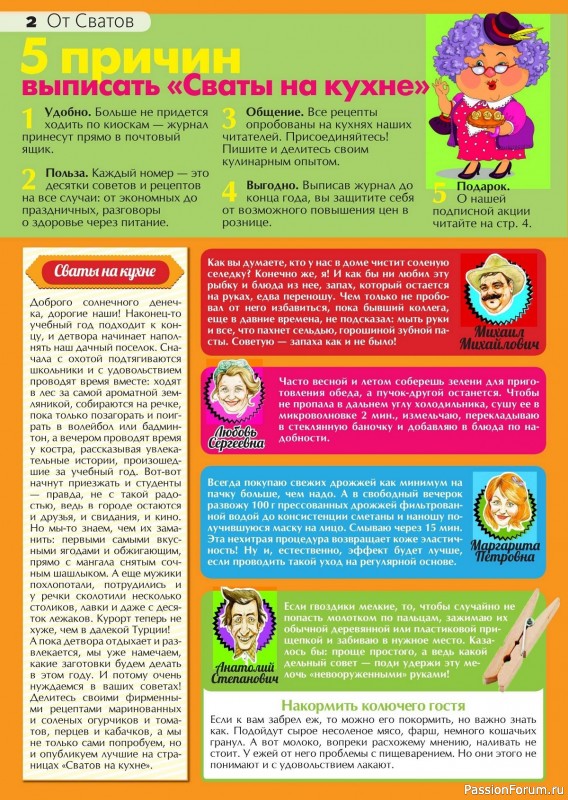 Журнал «Сваты на кухне» представляет более 200 кулинарных и около кухонных советов! «Вкусные» премудрости, праздничные, экономные и быстрые рецепты, здоровье, ремонт на кухне, эффективная уборка, рукоделие, звезды, застольные тосты и истории.