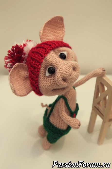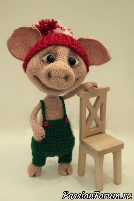 Хрюн Степашка связан крючком, 28 см. На каркасе, лапки и голова сгибаются. Шапочка снимается.
