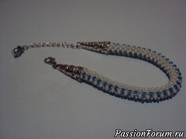 Вот такой комплект у меня получился по схеме " голубой на 5 бис" из группы в контакте. Жгут из чешского бисера , фурнитура под серебро. нитки ирис. Длина с бусинами 135 см толщина 0,07 мм.