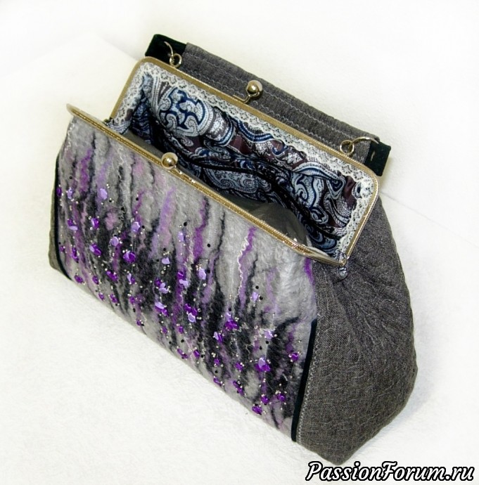 Доброго всем времени суток и хорошего настроения) Поделюсь фотографиями двух последних сумок с валяными вставками) Сумка "Северное сияние" Фиолетт , была выполнена на заказ. Как образец, она идет в монохромных серо-черных тонах, но будущая обладательница попросила добавить фиолетовых и сиреневых оттенков в валяной вставке и вышивке) Было интересно попробовать и такой вариант) А вот вторая сумка творилась в свободном вдохновении и в свободную продажу, и здесь я "оторвалась" на фактуре: тут и шерсть для валяния, и пряжа необыкновенная, вышивка лентами и немного "французского узелка" ирисом. ( Техника - мокрое валяние и иглопробивная машина) Получилась картинка настоящего Севера, белых метелей и вьюг) Назвала сумку "Северянка"))))