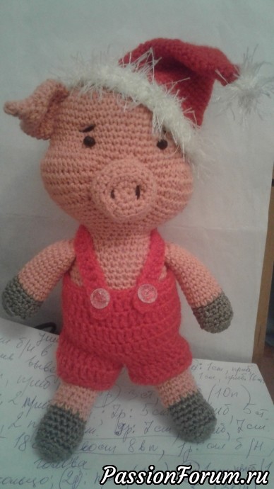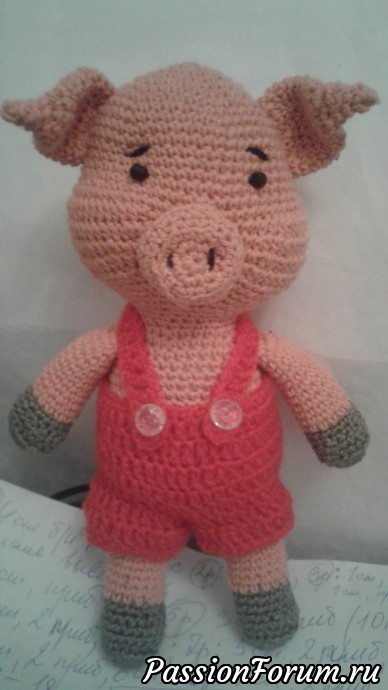 Началась моя "свинкомания" с маленькой свинки, которую я связала по просьбе внучки. Потом захотелось связать мальчика-кабанчика. И наконец я замахнулась на свинку на каркасе по МК Надежды Бияновой.