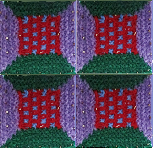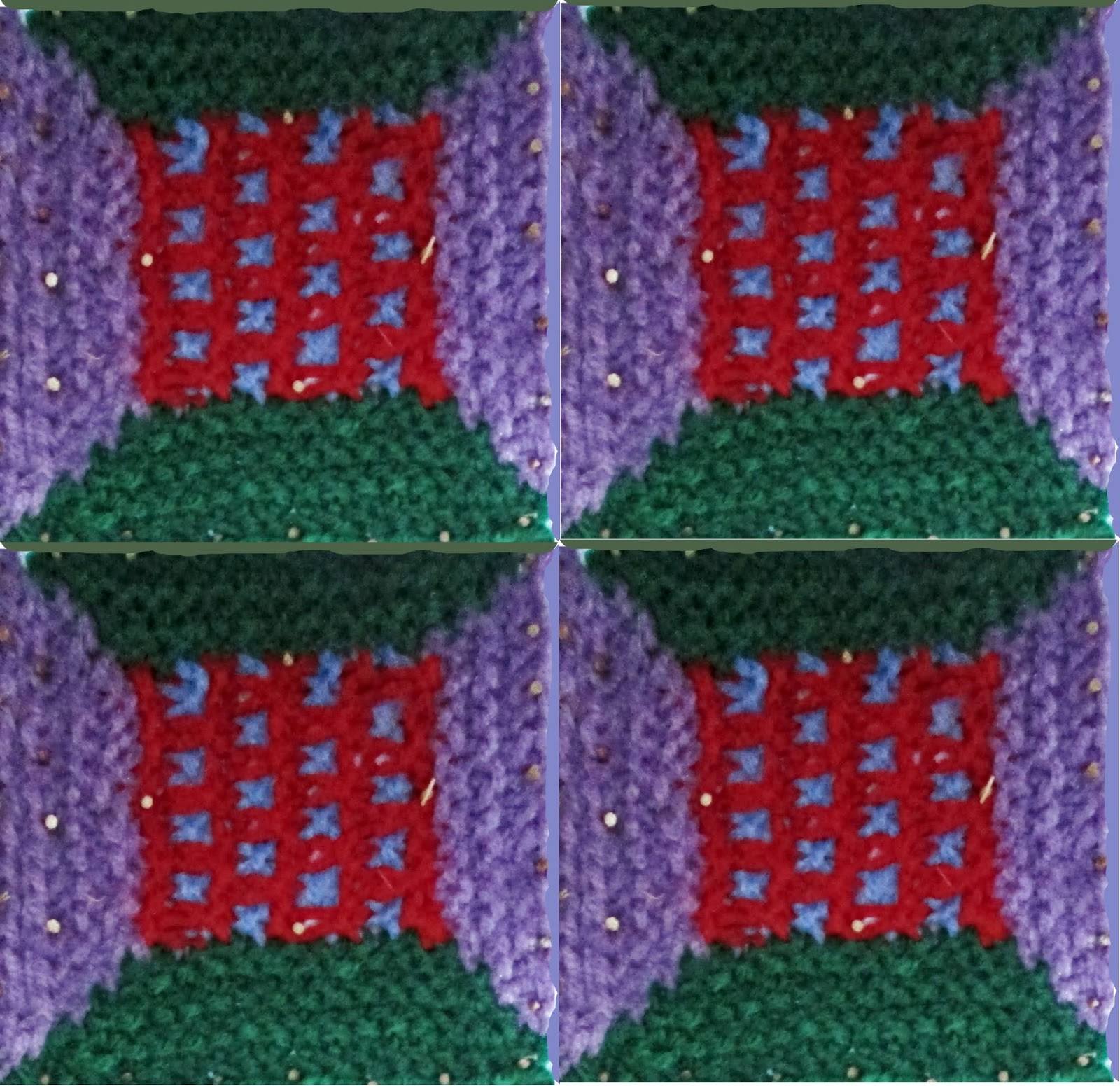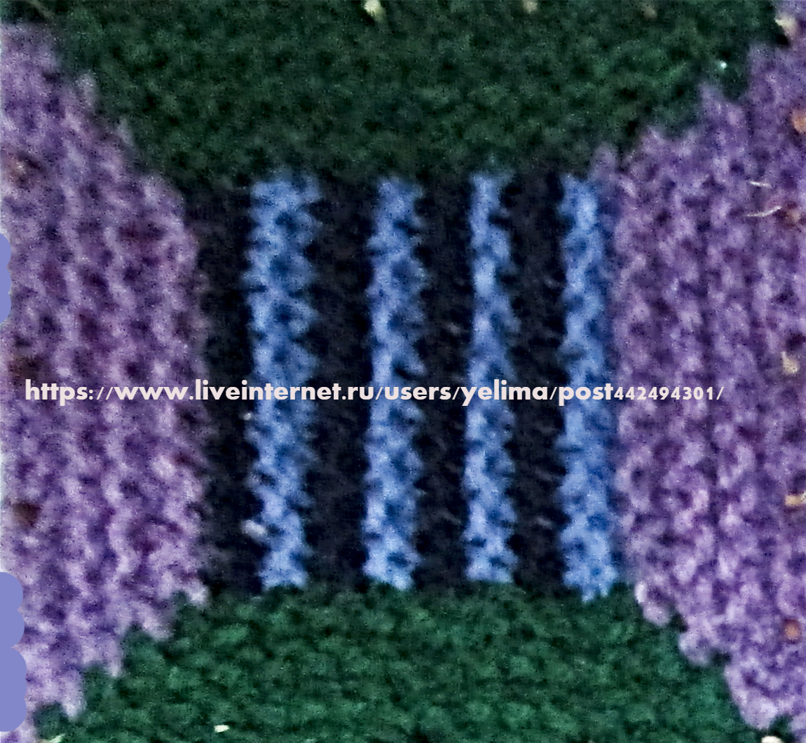 Например, если провязать соединительный шов между мотивчиками-по лицевой стороне, и пряжей контрастного цвета (например, белой))-это разобьёт рисунок совершенно по-новому: