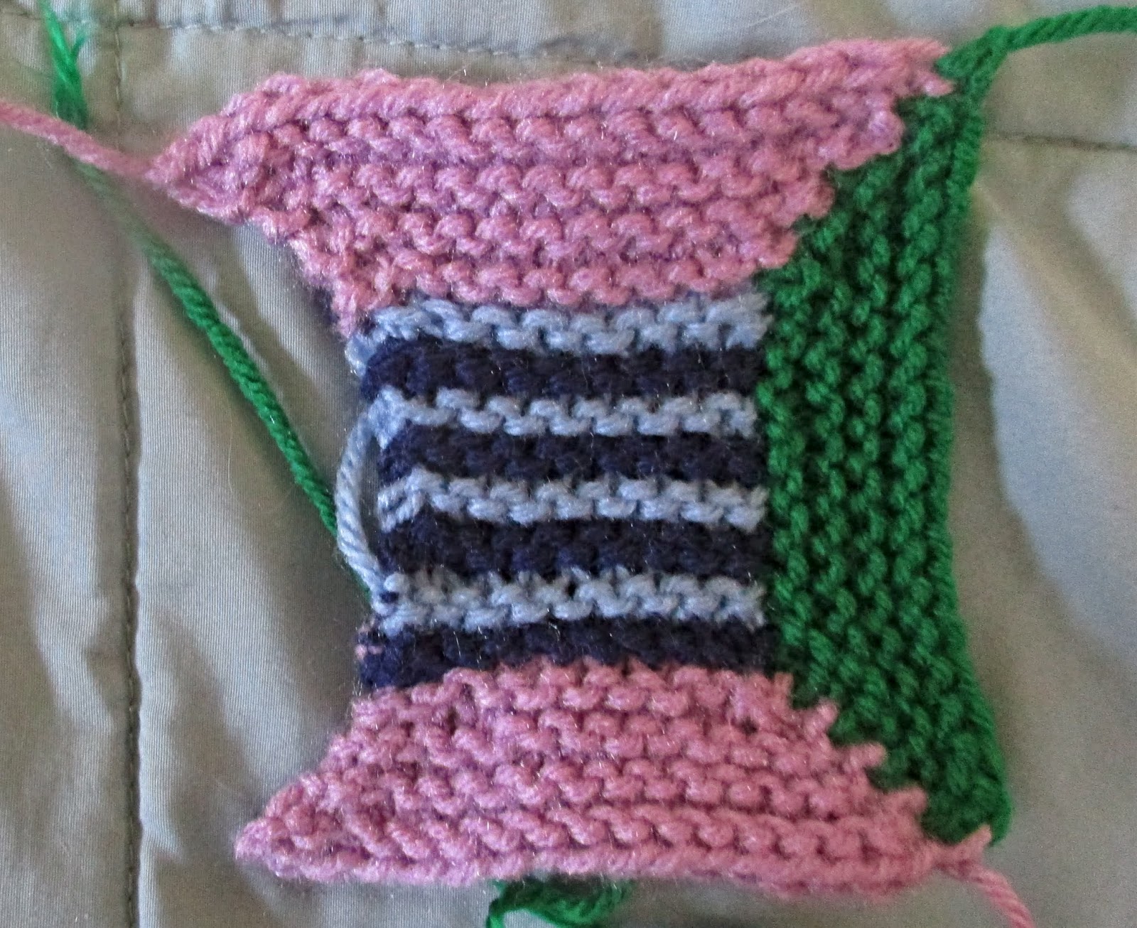Повторим 1-2 ряды ещё 3 раза, прибавляя петли в лицевых рядах, вытягивая их из бороздок.