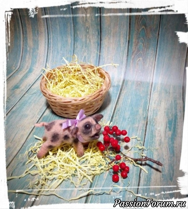 Символ 2019года-поросенок,сухое валяние из шерсти,рост всего 5,5см