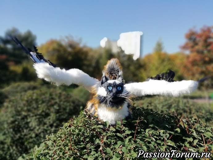 Сделан на гибком скелете, может принимать любые позы, крылья можно складывать.