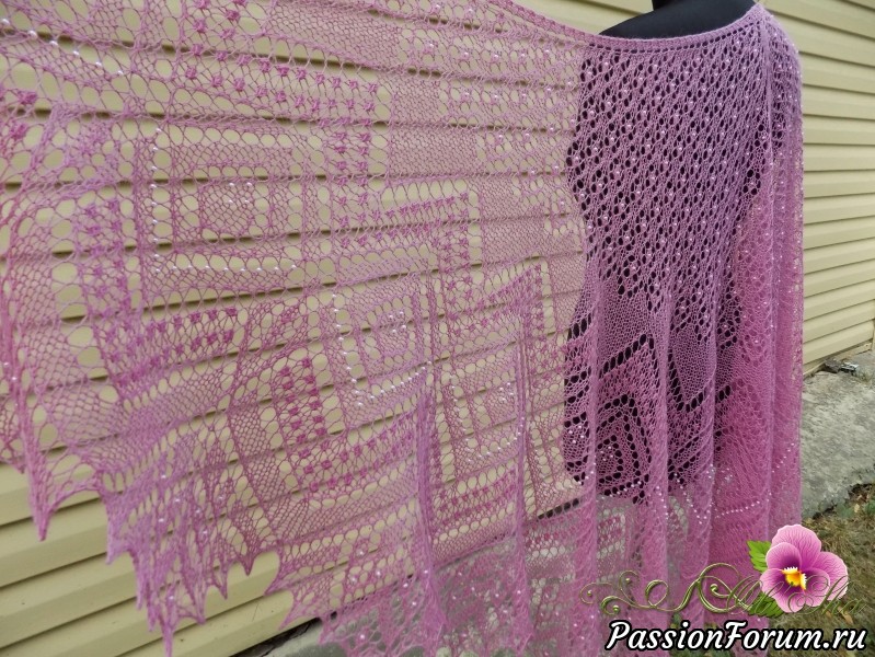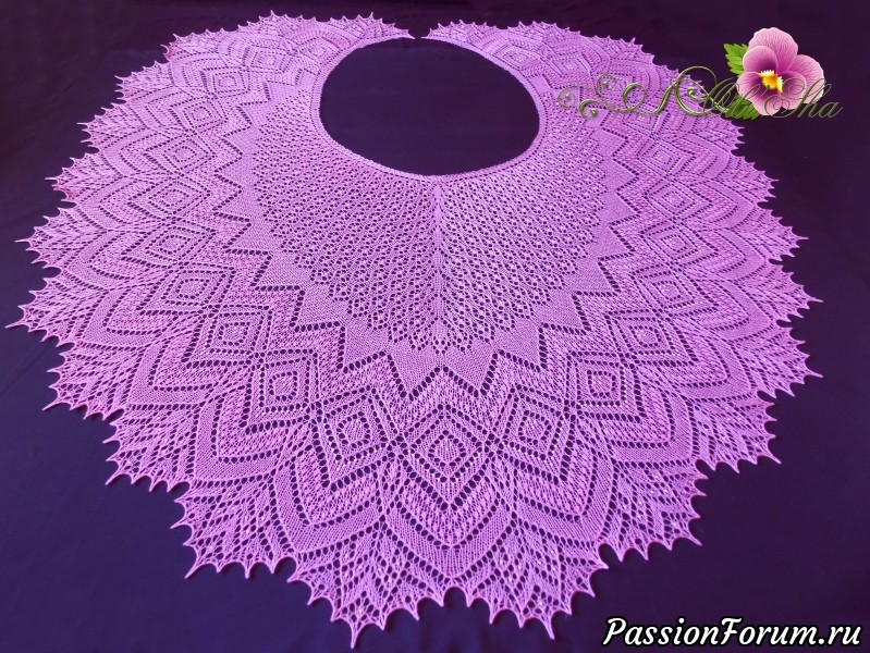 Шаль серповидной формы, вяжется от середины основания к кайме.