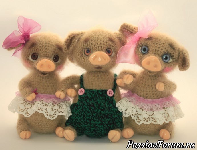 Три поросенка, связаны на заказ, 12 см. Лапки сгибаются.