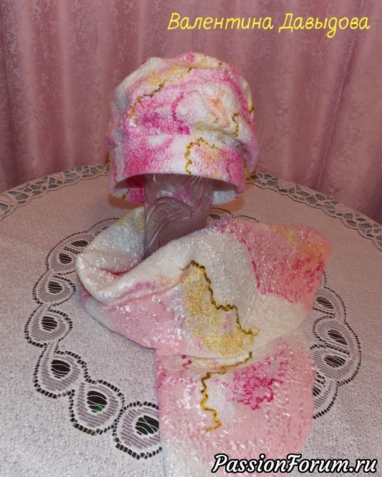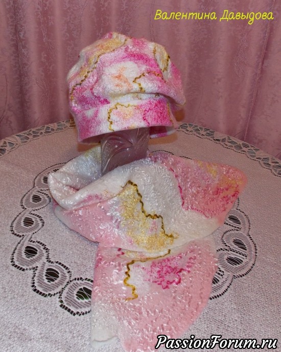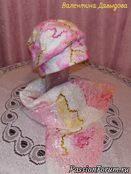 Комплект валяный "Бело-розовый зефир".Ручное валяние.