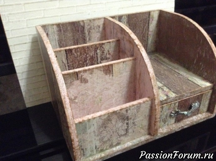 На компьютерном столе стоял у меня пластиковый органайзер. Решила поменять на комодик. И вот, что получилось: