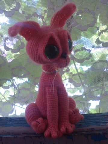 Солидарна с Sonrisa по поводу равнодушия к вязаным игрушкам. Но ваш котэ покорил. Такой умильный и грустный котейка, так и хочется обнять и приласкать. А хвост у него есть? А то по фото непонятно.