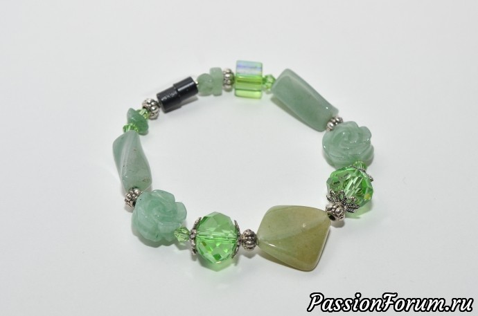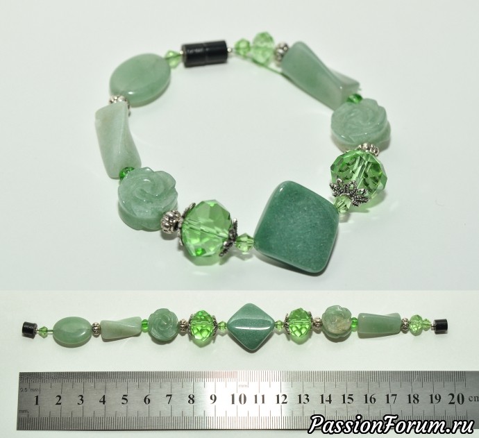Материалы: аметист, нефрит, флюорит, глазковый кварц, хризопраз, жадеит, декор пр.Чехия.