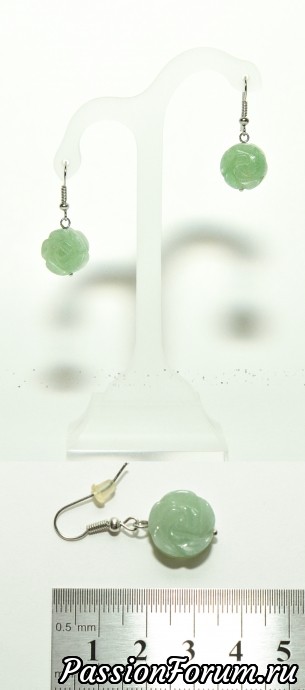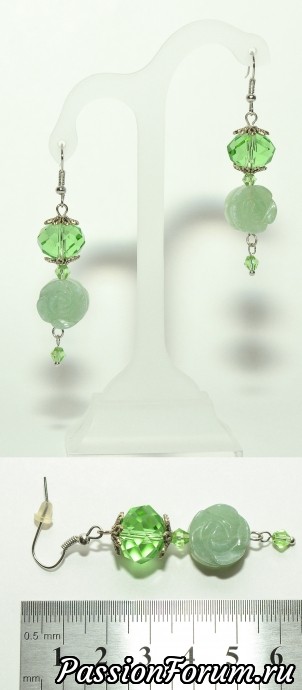 Материалы: нефрит, хрусталь, ювелирное стекло с глазурованным бочком, мелкие камушки - жадеит.