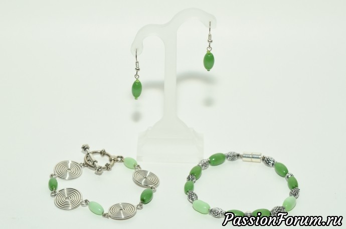 Предлагаю вашему вниманию украшения из зелёных камней: нефрита, хризопраза и жадеита.