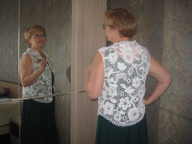 Дорогие форумчане! Решила показать вам мою не законченную работу - жакет в венецианском стиле вязания. Почему не законченная? А потому что еще буду довязывать рукава. Пока еще не решила точно- короткий будет рукав или 3/4. ... Поэтому пока в раздумье ... Сейчас в ютубе, на канале Натальи Котельниковой, идет и можно сказать уже заканчивается конкурс по венецианскому стилю вязания. Моя работа выставлена 20 ноября. Моя просьба ко всем желающим поучаствовать в голосовании, войдите, если вы зарегистрированы , и в комментарии поставьте оценку от 1-го до 5-ти баллов.