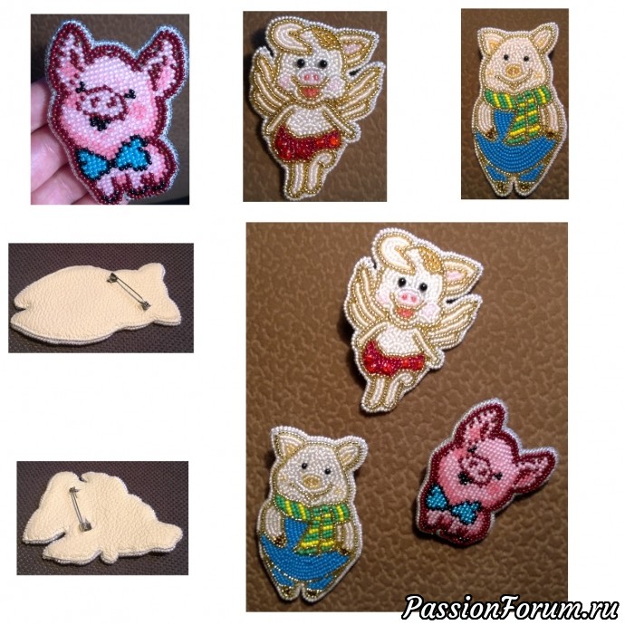 Поросёнка с крылышками подсмотрела на ЯМ у Н. Аничкиной. Там использована канитель. Я её заменила золотым бисером. И нарисовала как смогла.