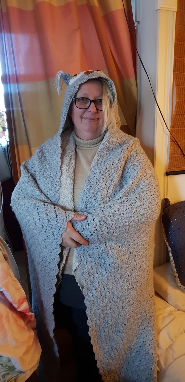 Тепло и уютно.Идея пледа с капюшоном мне очень понравилась.