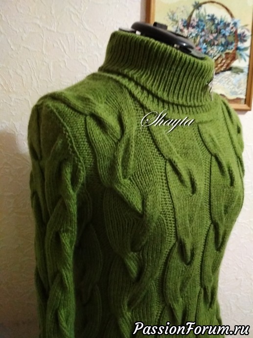 Здравствуйте, мастерицы!Платье "Айви" от Shayta,простое- с косами, с воротником-гольф,связано на заказ , на размер 44-46.Авторским назвать не могу,наверняка уже кто-нибудь вязал подобное... Пряжа Пехорка “Народная ”, 220м – 100гр., спицы №4 и №3 на резинку,на изделие понадобилось 8,5 мотков.Справа -разрез.Вяжется снизу вверх ,одним полотном,для разреза-поворотными рядами.Затем,перед проймами, разделила на полочки и спинку.Набирала 222 петли.Рукав вяжется сверху вниз(от проймы) на 66п,укороченными рядами. .Узор "коса" - из 18 петель(по 6п на 3 сектора),4 изн-между косами.Ворот связан ложной кетлёвкой на 124п.Всем вдохновения и удач!!!