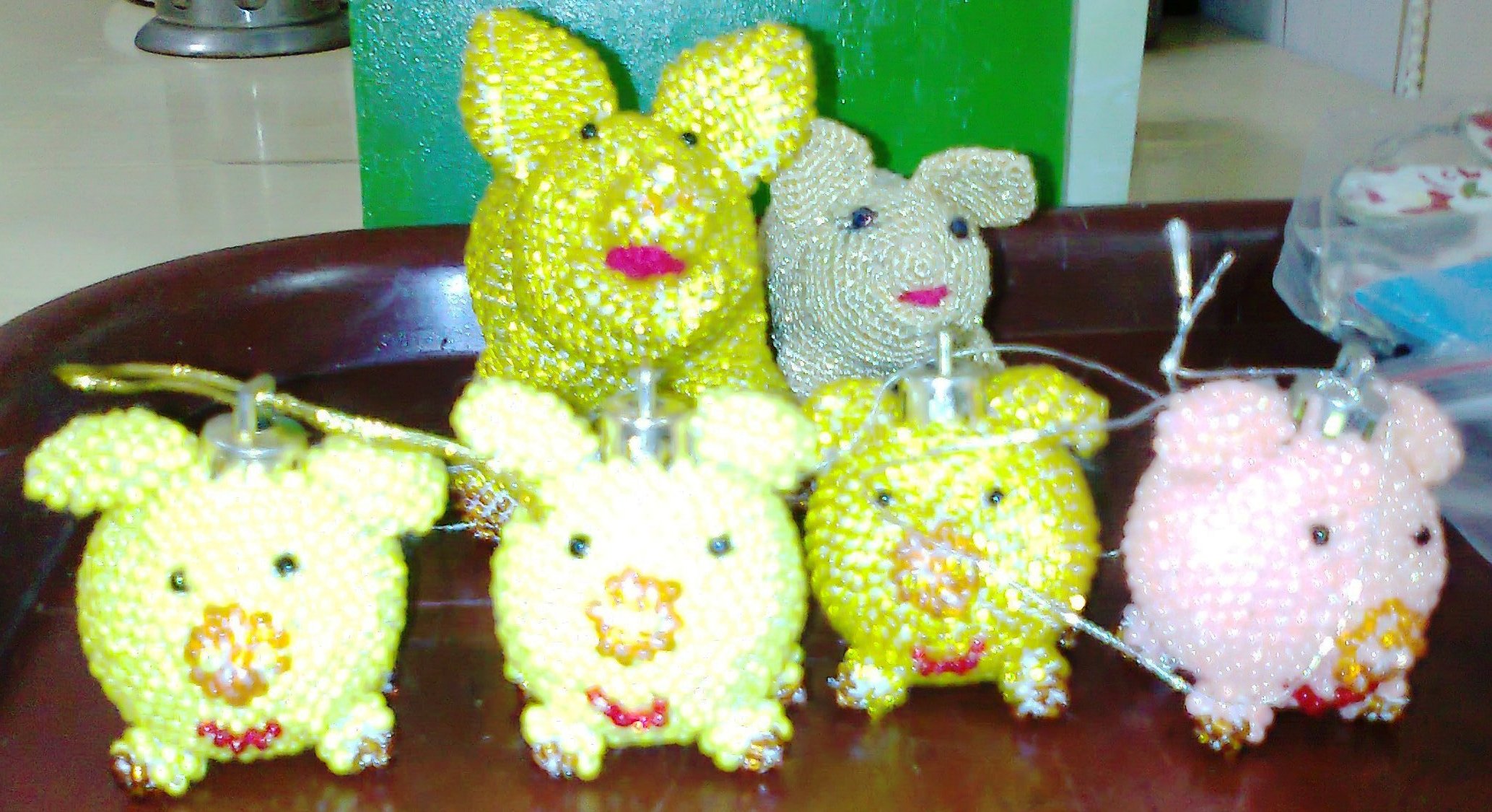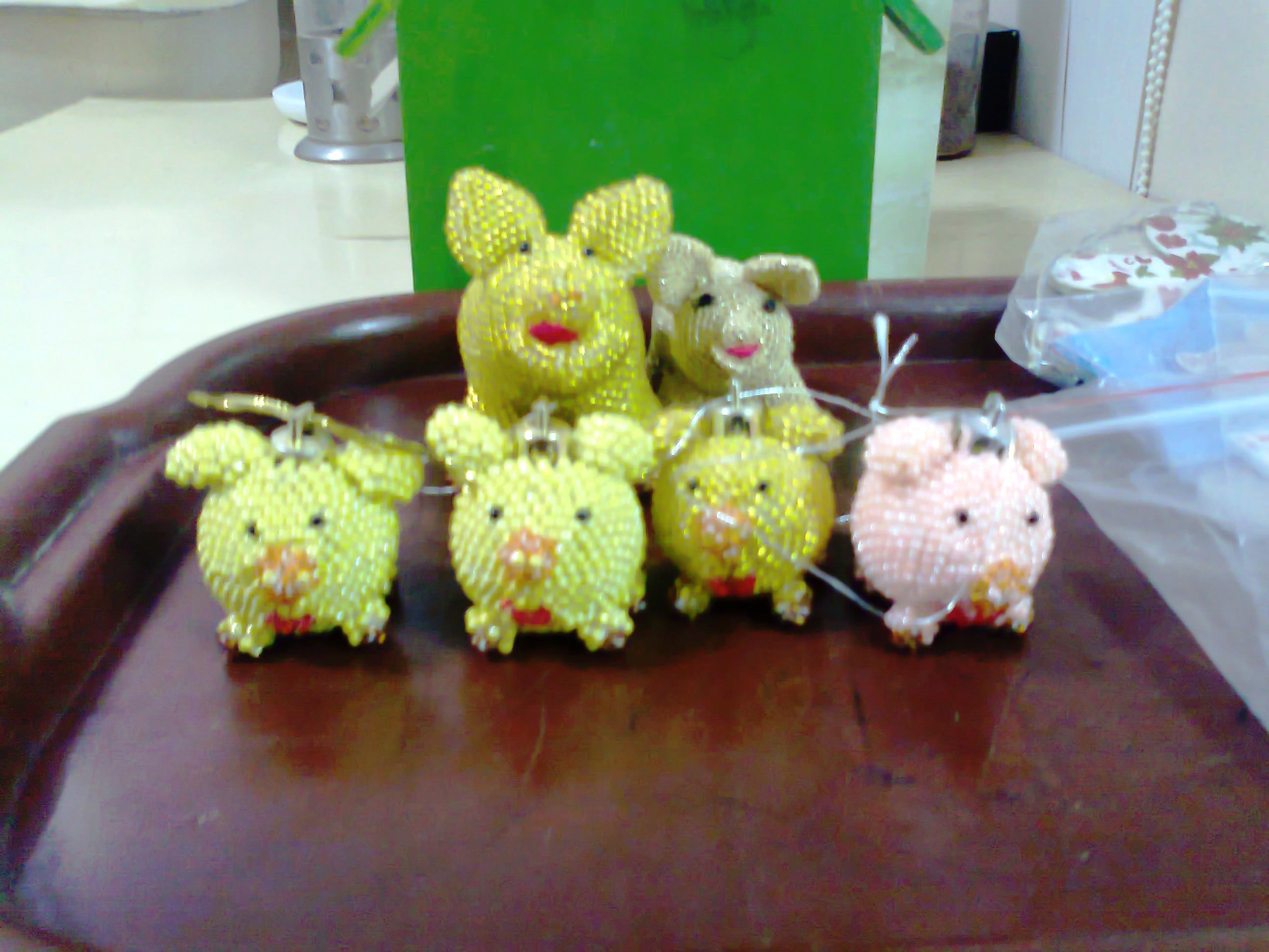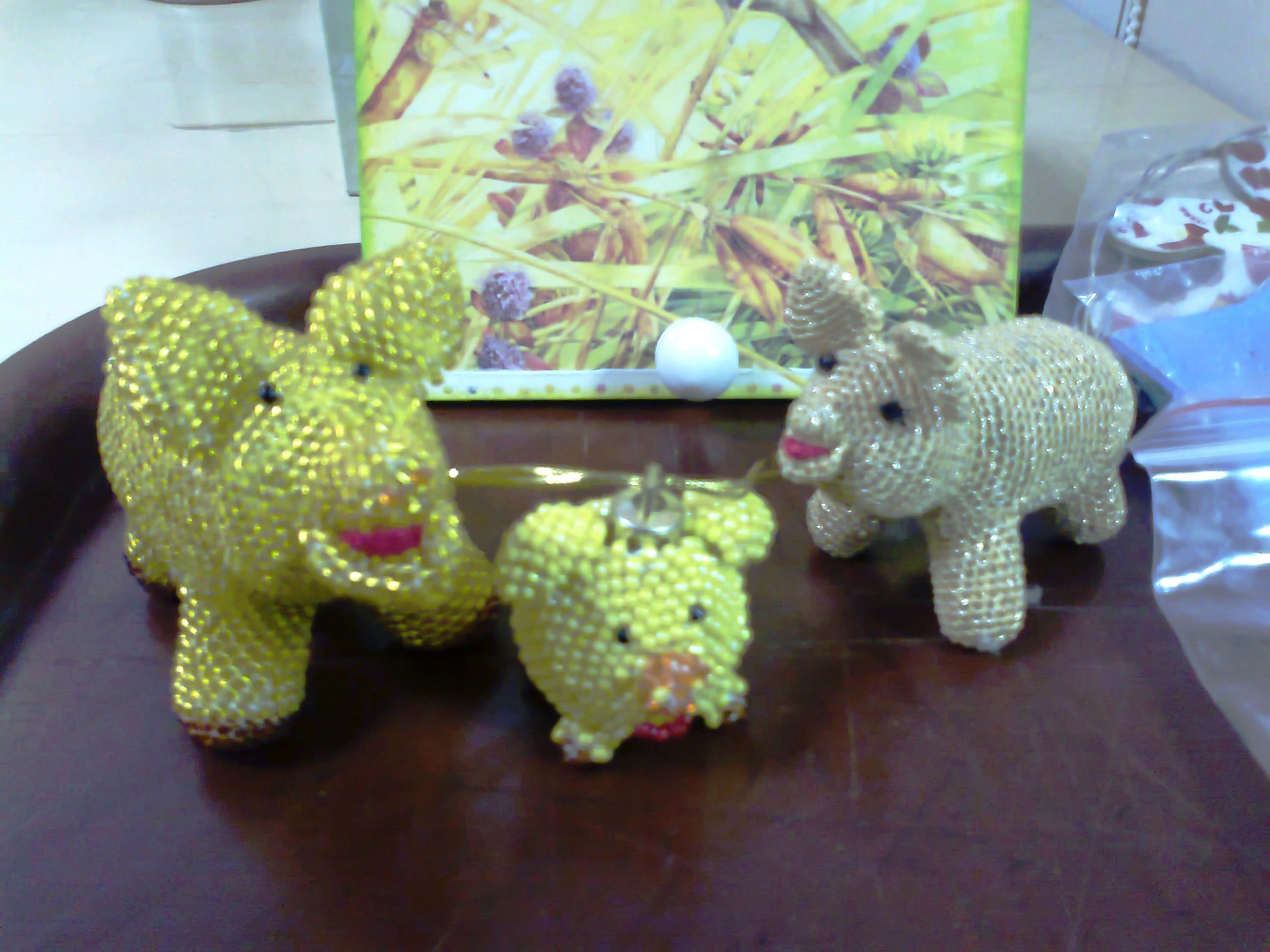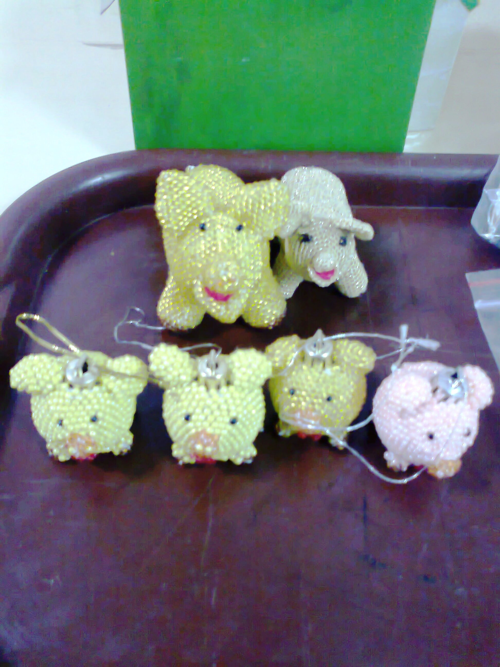 Мама из пряжи канарис с люрексом. А папа и детки из бисера на белую канарис