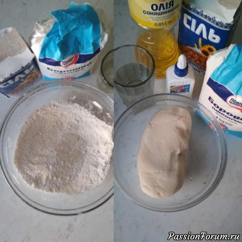 Тесто: 1 стакан муки из пшеницы твердых сортов, 1 стакан соли «Экстра», 1ст. ложка растительного масла, 1 ст. ложка клея ПВА. Замесила тесто, положила в полиэтиленовый пакет и отправила в холодильник.