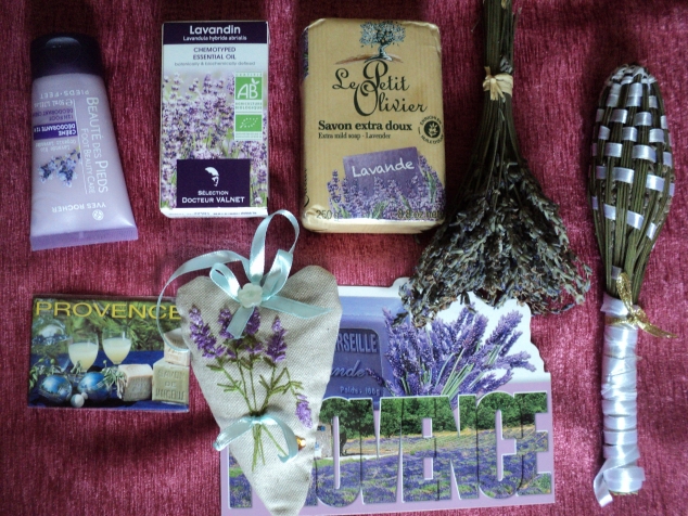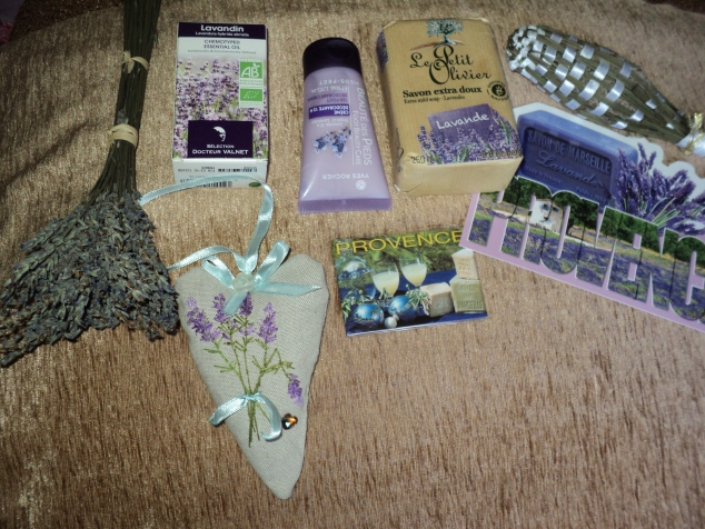 чего тут только нет! бальзам для ног, масло натуральное, мыло, букетики, магнит "прованс", саше с вышитой лавандой и открытка "прованс"...