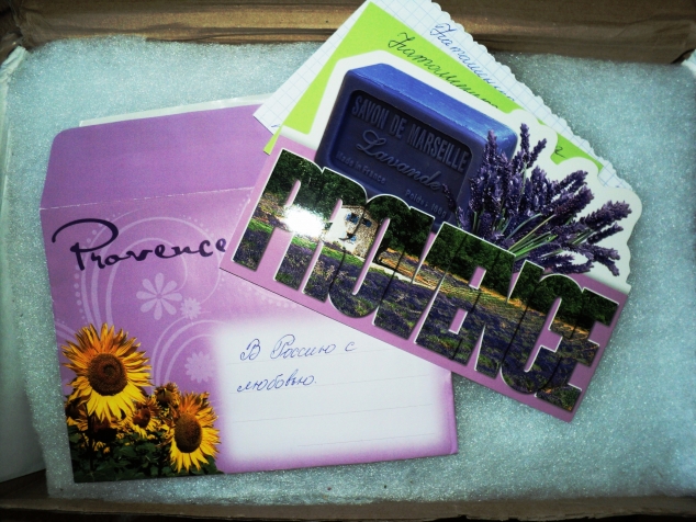 Открываю я дрожащими руками коробку... пахнет лавандой... Лежит конверт неописуемой красоты, а в нём открытка "ПРОВАНС" и письмецо, написанное ручками удивительного человека...