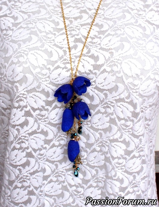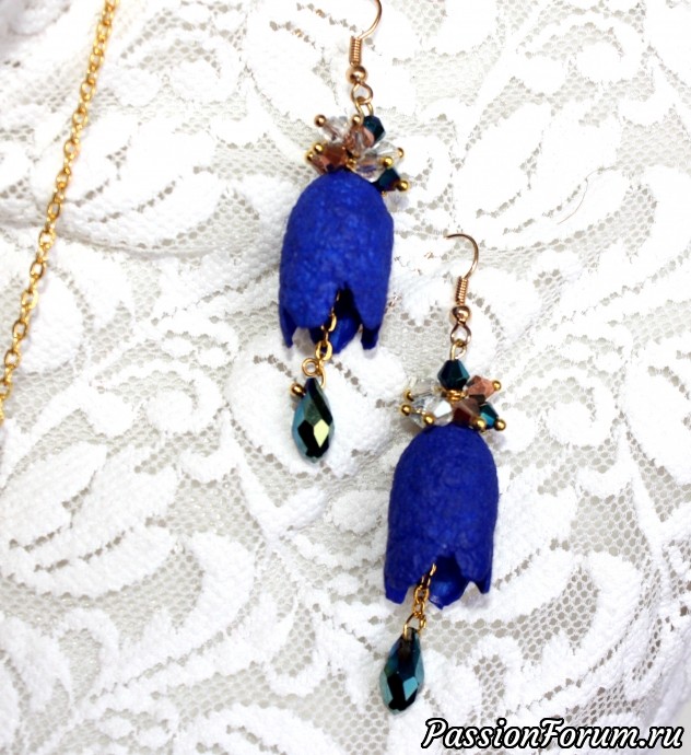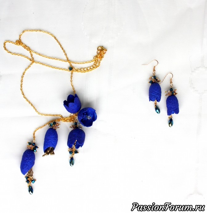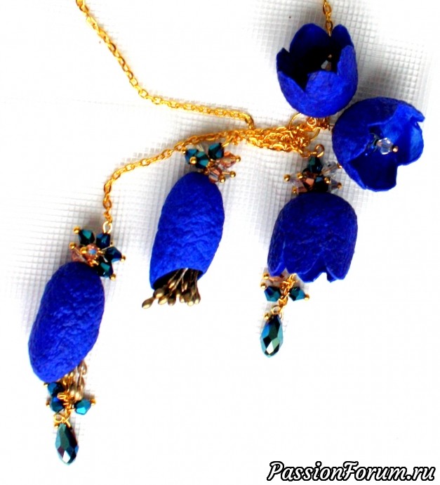 Сотуар и серьги "Синяя ночь" из коконов шелкопряда