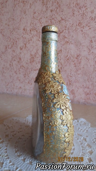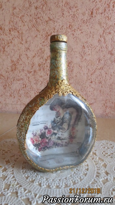Эту бутылочку я переделала,т.к. она в прежнем виде мне казалась скучновата.А теперь немного повеселела.