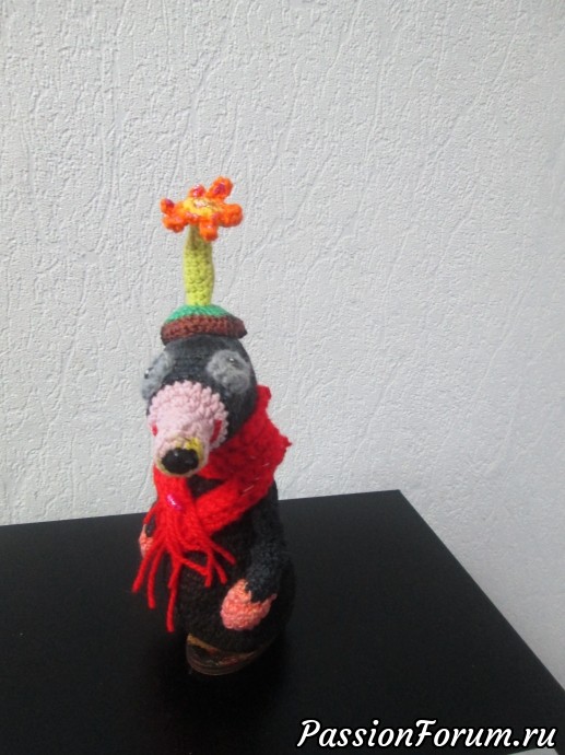 Здравствуйте девочки - умелочки-золотые ручки))) По немецкому описанию связала крота. Замерз Федя и пропросил шарфик)