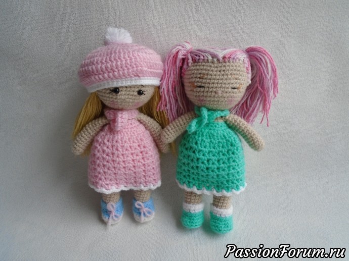 Ваши девочки чудесны! Пробую тоже вязать кукол (есть топики о них). Желаю и дальше продолжать это увлекательное занятие. (для меня самое трудное — мелкие детали отделки и одёжка)