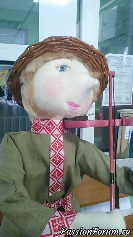 КУКЛА ТЕКСТИЛЬНАЯ. РУБАШКА СШИТА ИЗ ЛЬНА. ШТАНЫ ИЗ ТРИКОТАЖА. ВОЛОСЫ - ШЕРСТЬ ДЛЯ ВАЛЯНИЯ.