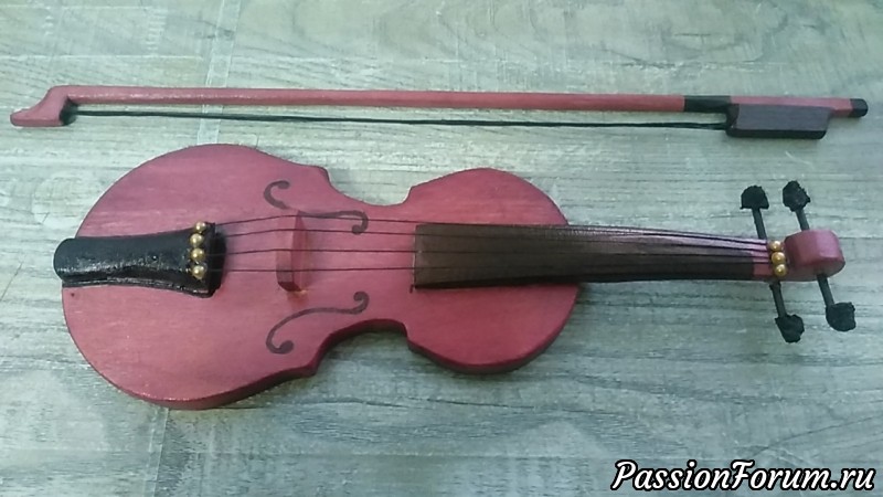 СКРИПКА СДЕЛАНА ИЗ ДЕРЕВА. БОЛЬШОЕ СПАСИБО, МОЕМУ КОЛЛЕГЕ ТРУДОВИКУ, КОТОРЫЙ ЕЁ СМАСТЕРИЛ ВМЕСТЕ СО СМЫЧКОМ.