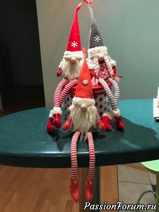 Добрый день, дорогие рукодельницы! Поздравляю всех с наступившим Новым годом! Как и планировала, я нашила скандинавских гномиков всей своей семье. Всего получилось 7 штук. Как приятно дарить подарки сделанные своими руками с любовью. Сколько добрых слов слышишь в ответ!!! Вот такая семейка получилась! (Одного не успела сфотографировать!)